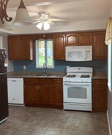 4 bedroom ranch home located in Chardon Park Estates. Fenced in backyard with spacious covered patio is perfect for entertaining kids, pets, family, and friends. Come into the open concept eat in kitchen and living room, both of which were just freshly painted. This home features life proof vinyl and ceramic floors throughout the main living areas. The four bedrooms were newly carpeted this year. The full bathroom was completely redone and updated in 2019. The master bedroom has its own half bath in suite. There is a detached two car garage for parking, storage, and or workshop ideas. Bring your stuff and your ideas, there's plenty of room in the newly finished basement, with large recreational space, and a freshly painted floor. The laundry room, a bonus room, and room for storage, is also all in this newly finished part of the house.