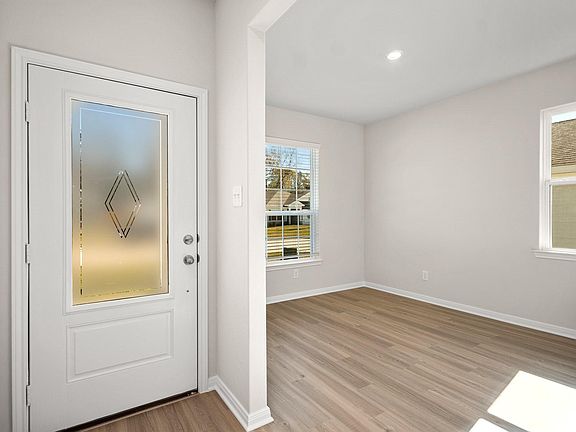 Step into this beautiful new construction home offering 3 spacious bedrooms and 2 full bathrooms, designed for both comfort and style. Inside, you'll find high ceilings that enhance the open feel of the living spaces and spray foam insulation for energy efficiency year-round. The modern kitchen is a chef's dream, complete with stainless steel appliances, including a refrigerator, and plenty of space to cook and entertain. The tankless water heater ensures you'll never run out of hot water, and the covered back porch is perfect for relaxing or hosting guests outdoors. Located in a vibrant community, residents can enjoy the newly opened walking trail circling a scenic 2-acre pond ideal for morning jogs or evening strolls. This home combines modern upgrades, thoughtful design, and access to outdoor amenities, making it a perfect fit for families, professionals, or anyone looking to enjoy contemporary living in a serene setting.