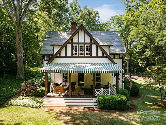 This charming 1923 English Tudor home nestled on 1.8 acres in the coveted town of Biltmore Forest, is brimming with curb appeal and ideally set across from Rosebank Park. Featuring 6 bedrooms and 5 full bathrooms and a private yard with room to play, this residence offers remarkable flexibility. At the heart of the home is a large living room with a fireplace perfect for gatherings and relaxation. The sitting room and office, just off the living room, could be re-imagined into a sizeable primary suite on the main level if desired. Its quaint and tasteful kitchen is open to a breakfast area and steps away from a formal dining room. The upper level boasts 4 en-suite bedrooms including a spacious primary bedroom, providing ample room for family and guests. The Lower level family room wrapped in unique wormy chestnut walls features a 2nd fireplace and wet bar creating a cozy vibe- ideal for entertaining. Own a piece of history by making one of Biltmore Forest's original homes your own!
