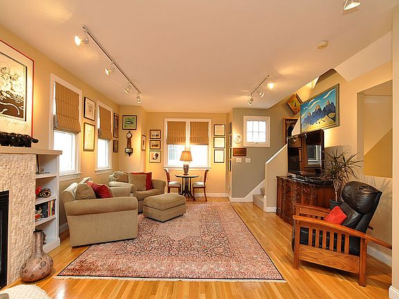 Impressive 4 level townhouse situated near the Cambridge line, close to Harvard, Inman & Union Squares. Privately setback in a courtyard, a bright & sunny corner unit created by 3 exposures. Enter onto bamboo floors with a lushly-carpeted rear bedroom/study facing a patio & adjacent to a fully-renovated bathroom. Ascend to a stunning open-concept living space with high ceilings, featuring a gas fireplace surrounded by travertine, honed & polished granite in the kitchen with custom maple cabinetry. Spectacular upper level master bedroom suite with a grand vaulted ceiling & an exclusive loft for study & tastefully-remodeled master bath with counters of recycled glass. Third large bedroom has a walk-in closet & two cedar-lined closets adjacent to a newly-remodeled bathroom with well-crafted designs including jumbo basket weave marble floors, rolling glass doors, 6 body jets & rain shower head to finish this exquisite space. All the closets/storage you need. Close to desired locations.