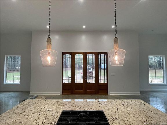 Front porch guests are the best, and your furry friends ?? will love it too! ?? Home and 8 acres located on the south side of DeRidder LA. Off Hwy 27. The canopy of oak trees lining the driveway of this 8 ACRE wooded tract takes you to this 100% Cypress exterior board and batten studio style home designed to meet the highest levels of efficiency and quality with the experience of beauty and tranquility. Upon entering through the 9 by 9 foot Spanish Cedar doors, you'll find this property boasts 11 to 14 foot ceiling heights, clean smooth finish sheetrock walls and ceilings. The bathroom has a custom tile shower, walk in closet and ample vanity storage. The open kitchen features a stainless steel 5 burner gas range and stainless dishwasher with a ~16 foot span of granite counter space, shaker style base cabinetry and single bay stainless under-mount sink. The amazing 9+ foot granite island allows for added storage and under island microwave cubby. Kitchen windows spanning 6 feet provides an expansive view of the post and beam back patio and views of the outdoors. The 3 ton 16 seer high efficiency heat pump central HVAC allows for quiet comfort and Energy Savings year-round. A large separate laundry area has a ~7 foot granite work space, utility sink space, storage shelving and Rheem tankless propane gas water heater. Your grand post and beam front porch, back porch and 2 car open carport with 6" seamless gutters, provides light-filled artful spaces for leisure activities, entertaining and enjoyment. As well, the 20x24 metal building on a concrete slab is perfect for storing all those outdoor tools, toys and equipment. What you'll find exist here is a constant reminder of carefully detailed construction alongside artful modern additions. The understated elegance that feels right for today, while still speaking to a classic era of quality and craftsmanship. Property is located on the corner of Williams Road and Ethel Lane, DeRidder, LA.