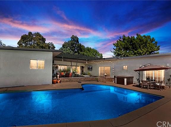 This Mid Century Modern property has 4 bedrooms 3 bath including dual master main house with Pool!. This estate also has over 700 sq ft permitted separate ADU guest house with full kitchen , 1 Bed and 1 Bathroom included in total sq footage of listing. Full size heated pool for the coming summer months! Open air patio will amaze your guest and maintain a relaxing atmosphere for years to come. Extra wide impressive custom solid wood door greets you to huge living room with parquet wood floors and chic fireplace in living room. Classic entry with marble flooring. Home Dual master suites on each end of the home. Dining room, Family room with a second fireplace perfect for relaxed family gatherings. Bathrooms are updated and beautiful. The kitchen recently remodel with euro style sleek cabinets, stone counter tops, marble floors and boasts an amazing view of Mount Wilson from huge custom window. Giant laundry room that doubles as a sun room with floor to ceiling window and views of the garden. Central heating and air through out including the guest house. Large lot property with extra long driveway that wraps along the property to the garage.The architecture of the home is amazing with fine lines and natural wood mixed with modern Mediterranean smooth walls. Located in one of the most desired area of Pasadena - Hastings Ranch! Pasadena known for its diverse culture and activities. The Rose Parade - Tournament of Roses, Rose Bowl ,Pasadena Playhouse, CAL Tech, JPL, Museums and where the band Van Halen got its start. 11 miles close to Downtown LA - 15 minute drive to Chavez Ravine home of the World Champion Dodgers!
