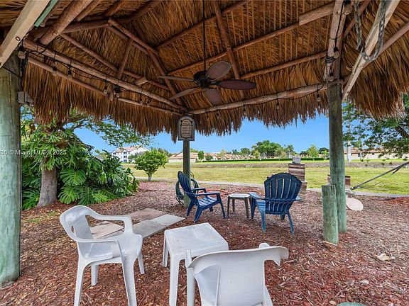 Looking for space for the kids to play and adults to relax? Look no further. This impeccably maintained home with a NEWLY THATCHED TIKI HUT and a large STORAGE SHED/WORKSHOP with electric is on an extended lot with easement to the Middle River. The kitchen has granite counters, newer fridge, a wide pantry, and a GAS 5-BURNER RANGE WITH DOUBLE OVENS. Bedrooms are very spacious. Ceramic tile floors throughout. Oversize garage with new remote-controlled wall A/C. Extra wide driveway. NEW ROOF (2024). Water filtration system. CO2 detector. WHOLE HOUSE GENERATOR on city gas line. Large screened patio. Partial hurricane impact windows along with panels for remainder of house. Great location off the beaten track but just minutes from Sawgrass Mills Mall, restaurants, access to highway.