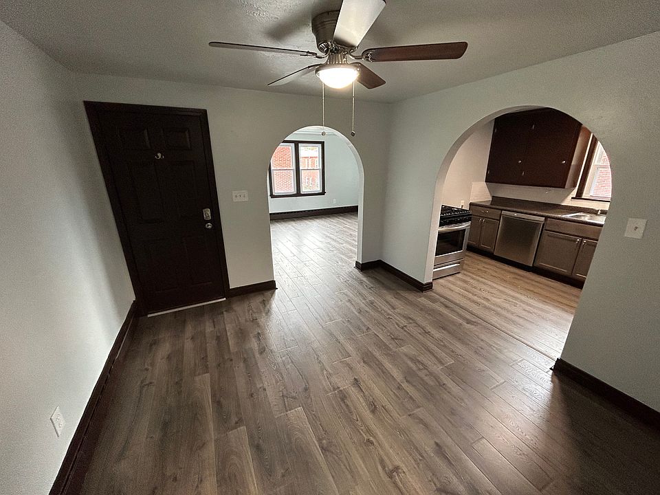 Large one bedroom in Blasdell, fully renovated in 2025. Laminate floors throughout. Bathroom sports custom tile surrounded bathtub, Moen bath fixtures, glass block window. New cabinet and counter tops, brand new stainless steel appliances including refrigerator, gas range, dishwasher, sink, and garbage disposal. Plenty of space and extra storage in the basement. Laundry hookups are provided and available for tenant use upon approval.