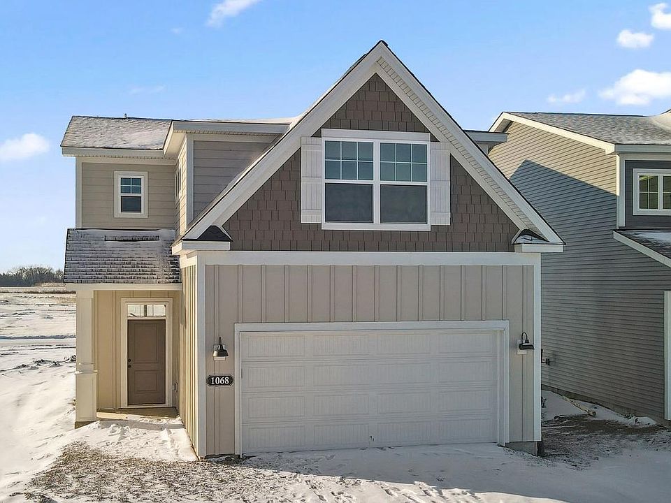 This home Backs up to a green space and the rear of the home faces south, letting in tons of natural sunlight into the main area of the home. Wide open main level with a cozy fireplace. The upper level has three beds, two baths, laundry, loft and flex room! Great layout at a great price! Stop out and see all we have to offer!