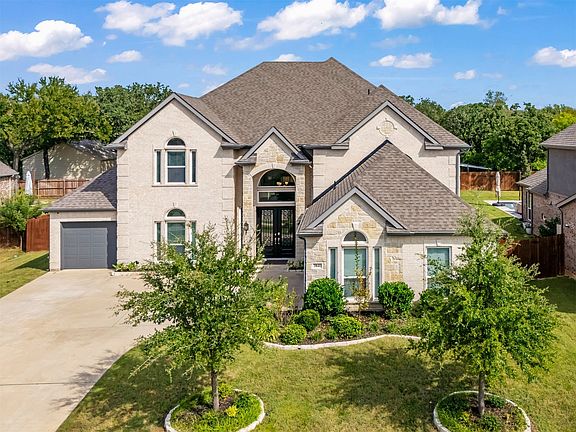 Welcome to 3841 Belle Way, a stunning 5-bedroom, 4.5-bath, 4,550 sq. ft. home built in 2019 by Harwood Homes. Nestled on an oversized lot, this residence combines modern upgrades with timeless elegance—perfect for multigenerational living.Step through impressive 8-foot double doors into a grand foyer with a sweeping staircase and iron rails. The open-concept layout features soaring ceilings, rich upgraded flooring, and a striking stone fireplace as the focal point of the living room. Expansive windows fill the space with natural light, creating a warm and inviting atmosphere.The chef’s kitchen boasts crisp white cabinetry, pendant lighting, a large island with bar seating, a butler’s pantry, and a seamless flow to the dining area overlooking the backyard. Each bedroom is generously sized, with dedicated high-speed internet and HDMI wiring. The floorplan includes a private mother-in-law suite with attached bath and a convenient Jack-and-Jill suite for flexible family living.Outdoor living is equally impressive with a covered patio, outdoor fireplace, and a spacious backyard—perfect for entertaining or unwinding. A Puragain whole-home water filtration system provides clean, fresh water throughout the home.