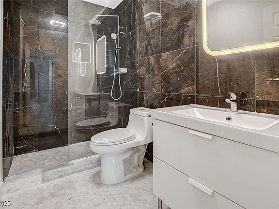 Completely Updated and Move-In Ready! Open Spacious Floor Plan! Luxury Vinyl Plank Flooring Throughout; Quartz Countertops and Custom Cabinets in Kitchen with Stainless Steel Range Hood and Sink; Remodeled Bath Offers $10k in Upgrades Including Marble Subway Tile and Mosaic Flooring; Oversized Bedrooms; Community Pool. Easy Access to UNLV, Dining, Shopping, Sports and Entertainment. HOA Covers Exterior of Building, Including the Roof, and Water and Trash. Complex Offers Coin Operated Laundry Room.