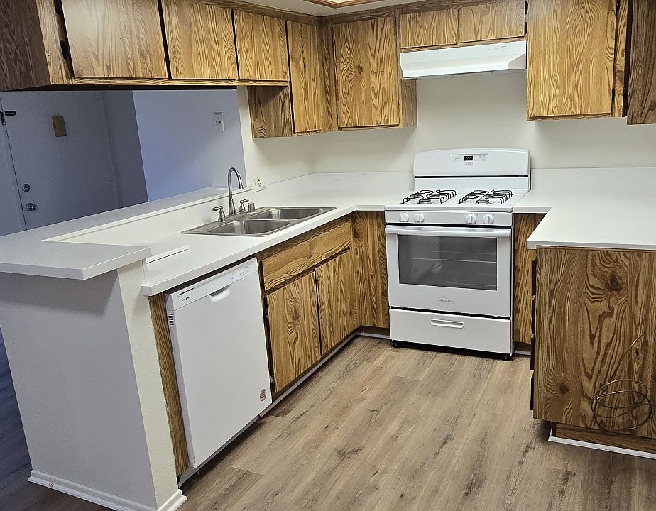 Upstairs 2 bedroom 2 bath unit with quartz countertops, stove, dishwasher, central a/c and heat, 1 carport parking spot + 1 open parking spot with permit (1st come 1st serve) Unit Features Vinyl planks throughout and carpet in bedrooms only along with a private balcony. Complex features coin laundry onsite.