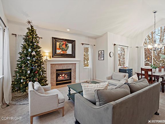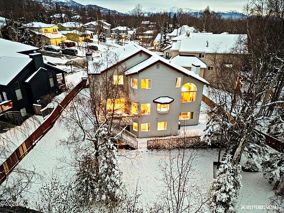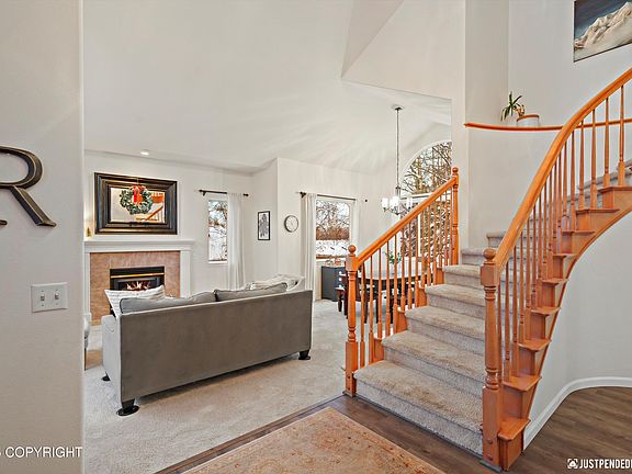 Discover exceptional space and comfort in this beautifully updated two-story home with a full walkout basement, perfectly situated on a quiet cul-de-sac backing to South Anchorage High School. With direct access to paved and lit trails and close proximity to Rabbit Creek Elementary, this location offers both convenience and a sense of community. The main floor welcomes you with a formal livingand dining room featuring vaulted ceilings and a cozy gas fireplace. The updated kitchen boasts quartz countertops, an induction cooktop, stylish tile backsplash, and an inviting breakfast nook with access to the back deck. An adjacent family room provides the ideal gathering space with its gas fireplace and custom built-ins. Completing the main level is a bedroom, a fully remodeled bathroom, and a thoughtfully designed mudroom with seating, storage, and laundry. Upstairs, the spacious primary suite impresses with a fully remodeled ensuite showcasing tile flooring, a standalone soaking tub, dual vanities, a walk-in shower, his-and-hers closets, and a private water closet. A versatile loft perfect for an office or cozy sitting area connects to two additional well-sized bedrooms and an updated full bathroom. The fully finished walkout basement offers flexibility, featuring a large family/rec area, an additional living space, a bedroom, a full bathroom, and abundant storage. Ideal for gatherings, hobbies, a playroom, home office, or potential in-law accommodations. A fantastic South Anchorage opportunity spacious, updated, and located in a desirable cul-de-sac with direct trail access and excellent nearby schools.