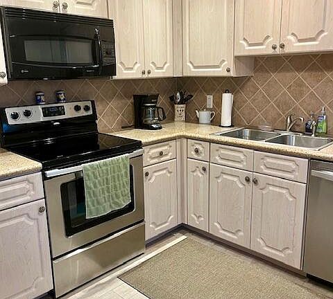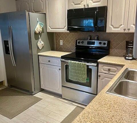 This is a Good Find..Affordable Townhouse w/ garage & Move Condition. Bring your dog(2 pets allowed). No age restrictions. 3 BR 2.5 Baths. Primary suite is on First floor. Pretty lake views. Fully furnished. Cute & cozy. Super clean. New Roof 2024. Impact Glass Windows. Hurricane garage door. Enclosed back patio. + Cute front patio area. Full size washer and dryer in garage. Conveniently located near great Parks, fine dining, shopping, Beaches, Golf. The Assoc fee includes Building Insurance(Exterior), lawn care, pool. Upstairs 3rd bedroom used as office. Skylights & Volume Ceilings. Accordion shutters on some windows. This is listed for Rent too.
