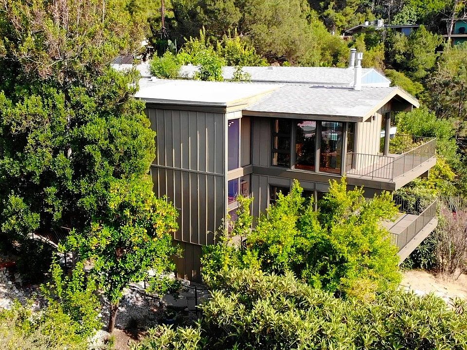 The precise lines of this midcentury board-and-batten prize harmonize with the organic forms of a gently sloping hillside in a quintessentially California vision focused by wrap-around balconies and picture windows affording expansive views. Designed by architect John Pugsley as part of a modernist enclave called The Cliffs, the home has been optimized for current lifestyles -- an updated master bath, for instance (with a frameless shower finished in travertine). The house surrounds a stairwell fronted by glass for a stunning atrium effect. Brazilian walnut underfoot furthers the feel of the outdoors brought in. The actual outdoors unfolds along an impeccably landscaped garden connected by a meandering path to backyard entertaining spaces shaded by laurel and fruit trees (and occasionally bedazzled by Dodger Stadium fireworks). You need not leave this property to enjoy a quiet interrupted only by birdsong, but the 282-acre Debs Park, a wilderness in the city, is just down the road.