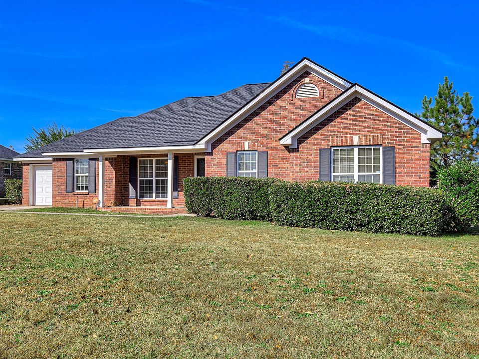 Only 5 miles from Fort Gordon's Gate 5 in the beautiful Cambridge neighborhood! All brick 3 BR, 2 BA ranch home built in 2006! All bedrooms include ceiling fans. Owners suite features walk in closet, garden tub, stand up shower, and dual vanities. Great large room with tall ceiling. Separate formal living room/office/playroom. Appliances including refrigerator and microwave Covered front porch. Large privacy fenced backyard. Storage building in rear of yard. Home is located at the end of the road providing lots of privacy, including a wooded lot behind and on right of home. Single car garage. Call today for a personal viewing!