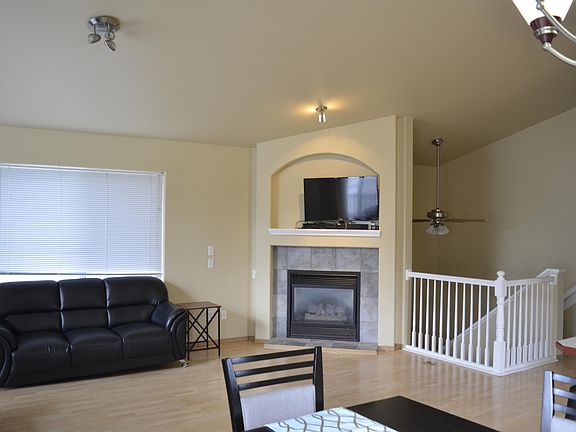 Corporate Rental. Completely Furnished. Just bring your suitcase. Complete with dishes, linens, and more. Enjoy the gorgeous close up view of the mountains from this East Anchorage home. Wood lam floors. Modern updated finishes and fixtures. Large back porch opens up to park. Available now. No smokers.
