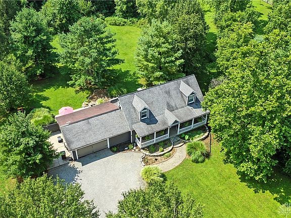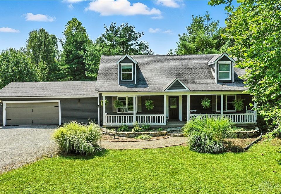 Private, Wooded Retreat on 1.67 A. This beautiful Cape Cod - Charm with Modern Comfort is tucked away down a long shared driveway offering an incredible sense of peace and privacy. Enjoy serene mornings or quiet evenings on the full covered front porch - perfect for coffee, unwinding after a long day, or simply soaking in the tranquil surroundings. Inside, the open layout welcomes you with a spacious kitchen featuring granite countertops, a full appliance package, pantry, counter-height bar, and durable laminate flooring. The adjacent dining room with a cozy gas fireplace and walkout access to a large deck and patio, sets the stage for family gatherings and holiday celebrations. A generous great room offers the perfect spot for entertaining or relaxing with friends and loved ones. The first-floor layout is thoughtfully designed with a primary bedroom that includes a private half bath, positioned next to a full hall bath for added convenience. A second guest bedroom is also located on the main floor, ideal for family or visitors.Upstairs, you'll find two additional spacious bedrooms and a full bath, offering plenty of room for family or guests. The partially finished walkout basement with laminate flooring provides flexible living or recreation space, with a bath rough-in ready for future customization. The unfinished portion awaits your personal touch-perfect for storage, a workshop, or more living space. Additional features include: Large first-floor laundry room; Attached 2-car garage with access door. Conveniently located to Lebanon and easy highway access and shopping. Located in Lebanon City School System.