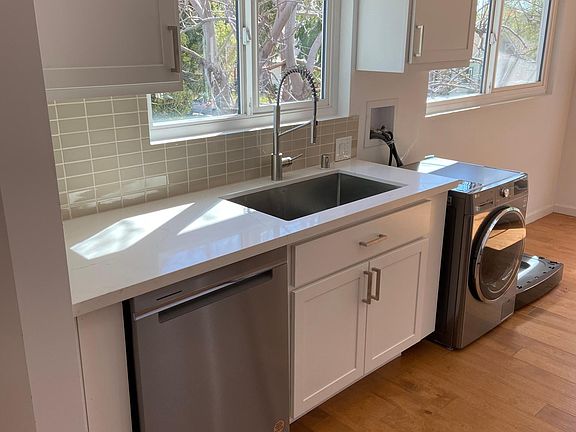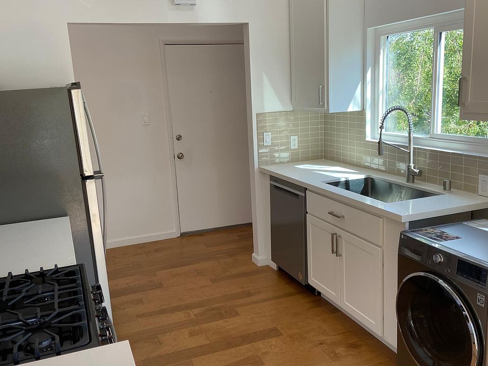 Brand New! Fully remodeled down to the studs. Deluxe front facing unit 3 huge living room windows with 2 large bedrooms living room and new open kitchen, high ceilings and grand bath in much desired dynamic Culver City. Central heat and air, washer dryer, engineered hard wood floors complete this prime unit. Two tandem parking spots, one is covered. Culver City Schools. Landlord pays gardener, tenant pays utilities. Two tandem parking spots, one is covered. Laundry is shared in building.