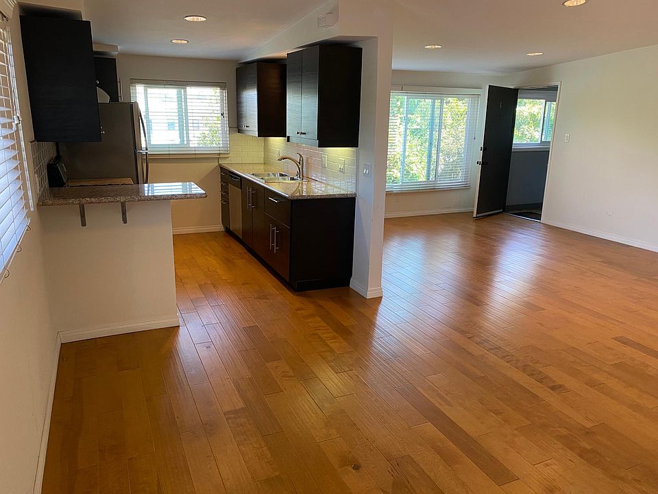 Spacious Culver City 2 bedrooom apartment in a small private fourplex building, gated with a private yard and laundry room for the tenants. Unit is fully renovated on the second floor with wood floors, recessed lighting modern open granite kitchen, large living room and 2 well lit bedrooms. Available August 4th, most convenient location between Washington and Venice Boulevards convenient to amazing central Culver City and the beach and freeways. Two parking spots. Water included. Gardner and trash included. Two tandem covered parking spots.