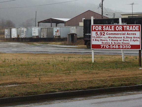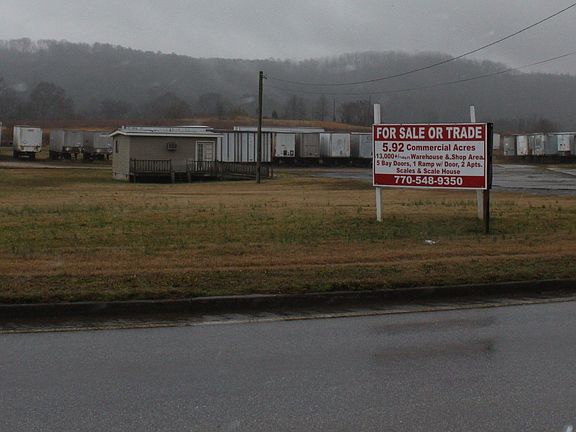 5.92 Commercial Acres for Sale or Trade, Hwy 53 Calhoun GA, 13,000 Square feet warehouse & shop area, 5 Bay doors, Ramp with roll-up door, 2 apartments, office space, Scale & Scale house, Additional building with office, bathroom & kitchen area.