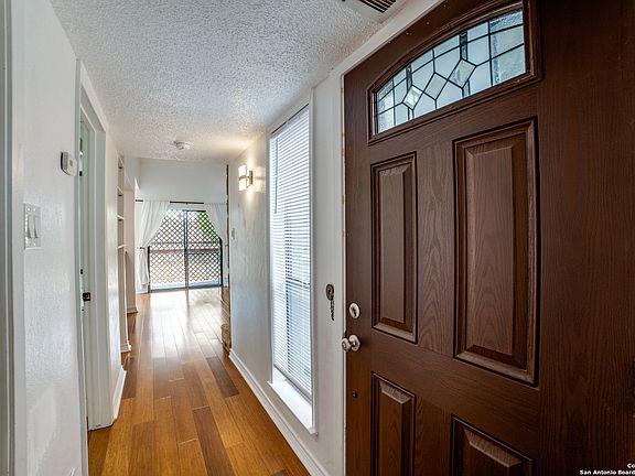 Step into this bright and airy 628 square foot condo located in the heart of the Barrington Heights neighborhood. Sleek, spacious cabinets and recently installed appliances that include microwave, electric range, and dishwasher round out a kitchen that is both stylish and functional. A refreshed full bathroom, stone to ceiling fireplace, vaulted ceilings, bamboo floors, acacia countertops, and covered balcony add to the charm. It boasts a large primary bedroom with walk-in closet and ceiling fan. Hosting guests is a breeze with the addition of the murphy bed. The condo association ensures low maintenance living and offers amenities such as pool, tennis court, and clubhouse. Additionally, a dedicated parking space is included. Centrally located and just minutes to fun and necessities such as BAMC, Fort Sam Houston, Broadway, The Pearl, major interstates, and downtown offer the utmost convenience. Come see this home today!