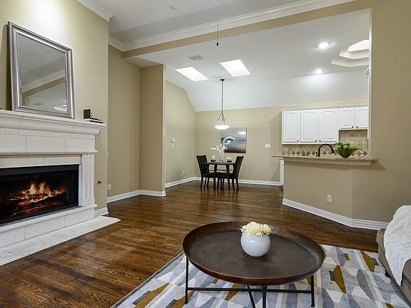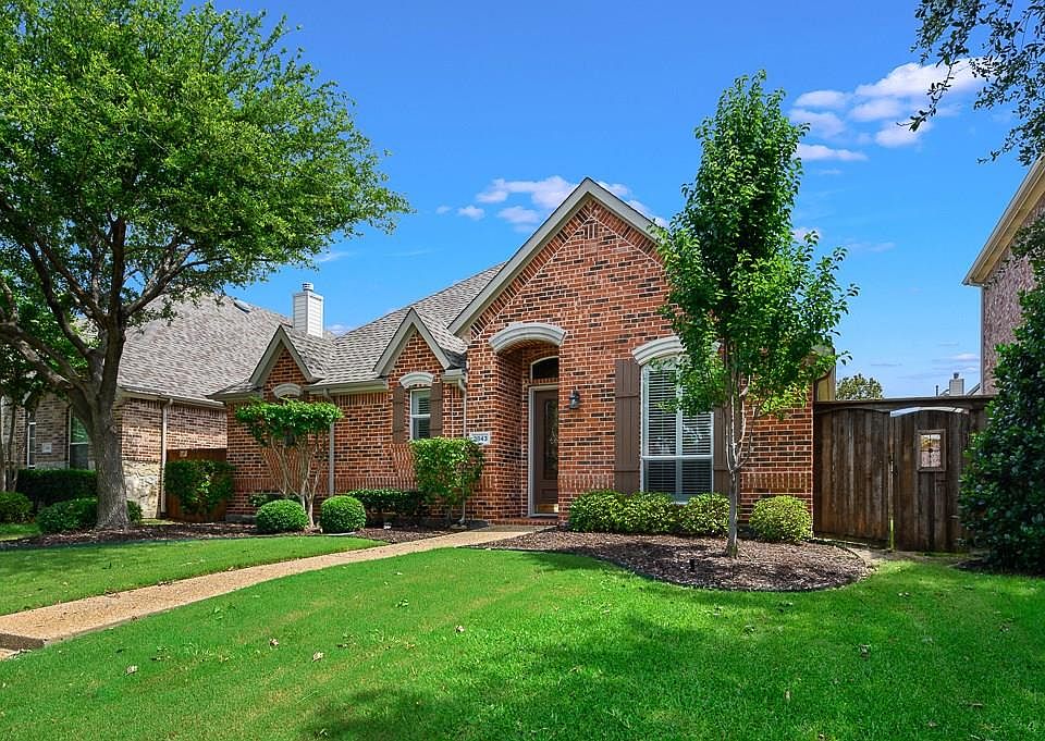 STUNNING one story home in PRIME Frisco location off Legacy and Lebanon. Beautiful curb appeal with manicured landscaping and mature trees. Move-in ready, completely updated with distressed hardwood floors, neutral paint, updated light fixtures, granite, island and stainless steel appliances in the kitchen and a breakfast bar that overlooks a spacious living area with gorgeous cast stone fireplace. Elegant crown molding and plenty of windows to provide natural light. Bedrooms are large and master bath provides separate Jacuzzi tub and shower. Backyard with covered patio is a great size with room for kids and pets to play. New roof and exterior paint. Furnace replaced in 2016, AC in 2014. This one is a MUST SEE!
