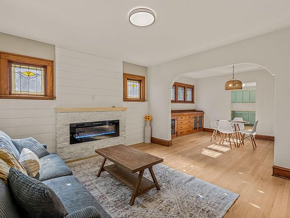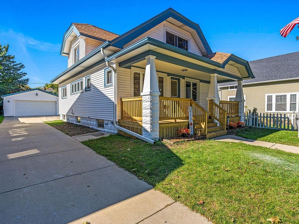 Step into this beautifully renovated 1927 Bay View bungalow where timeless character meets modern style. This 3 bedroom, 2 bath home welcomes you with refinished hardwood floors and a cozy living room featuring a new electric fireplace. The adjoining dining room boasts a beautifully restored built-in buffet, while the brand new kitchen offers butcher block countertops, new cabinetry, sink, & stainless appliances. The main floor also features an updated bath. Upstairs, enjoy a spacious new primary suite with walk-in closet, ensuite bath, & bonus room. The basement has been completely refreshed with a new concrete floor, stairs, & drain tile system with sump pump, along with updated electrical. Outside, the fenced backyard and oversized 4 car garage w/ skylights complete this Bay View gem!