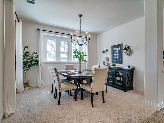 This spacious six-bedroom, four-bath home is thoughtfully designed for comfort, featuring two full master suites - ideal for multigenerational living or hosting guests with their own ensuite bathroom. A premium builder upgrade package infuses every space with clean, modern lines while still feeling warm and welcoming. In the chef-inspired kitchen, the top-tier finish package shines—quartz worktops, a beveled subway-tile backsplash, and pot-filler. The generous layout offers room to relax, work, and play, with oversized bedrooms throughout. Enjoy breathtaking sunsets from the second-story deck overlooking a peaceful ranch. Nestled in a vibrant community with walking trails, a stocked fishing lake, resort-style pool, fitness center, and year-round events, this home offers both serenity and connection just minutes from shopping and dining.