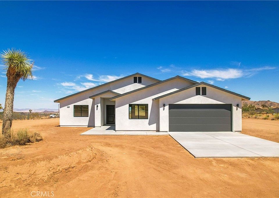 An extraordinary and recently constructed 4 bedroom, 2 bath home awaits you on the Mesa of Yucca Valley! Set on a sprawling 1.25 acre lot in a highly sought-after location, this property is simply irresistible. Step inside to discover a thoughtfully designed, large kitchen complete with stainless steel appliances and quartz counters, seamlessly connecting to the spacious living room, making it the ideal space for hosting guests and gatherings. With an expansive 1,900 sq. ft. of living space, this home exudes a sense of openness and airiness thanks to its high ceilings throughout. Solid concrete flooring adds a touch of sophistication to the interior.