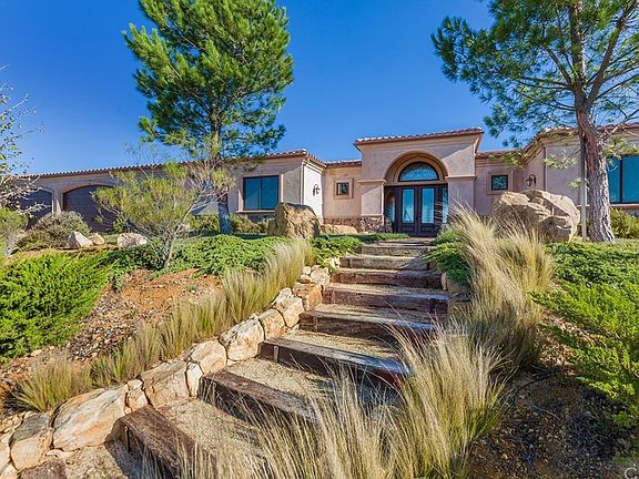 Location Location!! Motived Seller!! Elegant single story home in the prestigious and highly desirable gated community of Rancho Heights. Features 5 bedrooms, 4 bathrooms, 4,476 sq ft of luxurious living space, 9.52 Acres lot with breathtaking unobstructed panoramic views, and protected by natural preserves. This architecturally designed home offers custom inlayed and base travertine stone tile flooring including radius ceilings in hallway, exquisitely finished custom ceiling, fireplaces, and beautiful kitchen cabinetry. The kitchen features rich cabinetry, granite counters tops, center island, stainless steel appliances by Kitchen Aid & Viking, custom soffit ceiling work, fire sprinklers, eight foot dark stained knotty Alder doors, stained wood clad windows, kerf metal at doors and windows, hand oiled rubbed bronze hardware and plumbing, high grade electrical finish, central vacuum system, six zone extra filtration A/C and heating, two insta-hot water heaters, triple pane stained glass entry, 6 burner stove, double oven, extra large refrigerator, and a walk-in panty. The master suite has a retreat, fireplace, huge walk-in closet, walk-in shower with dual shower heads, jetted soaking tub, double sliding doors that leads to a professionally landscaped pool, spa, and fire pit. 26 ft deep four car garage, two water wells suppling 10,000 g /holding tanks, nine zone irrigation sy, auto gated entry, 2,600 LF of white vinyl fencing w/2x4 wire, galvanized barn,