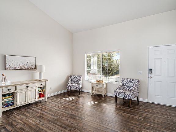 Welcome to your dream home in West Palmdale!  This immaculate 3 bedroom, 2 bath residence is turnkey and ready for you to move in.   Your Entry leads through the Formal Living and Dining Room where you will be greeted by the warmth of the Great Room's fireplace, creating a cozy and inviting atmosphere for gatherings.  The kitchen is a chef's delight, featuring a center island and modern amenities.  The home also offers a versatile playroom/office/den, providing flexible space to suit your lifestyle.  Upgrades abound, with newer laminate flooring, plush carpeting in the bedrooms, and energy-efficient LED lighting throughout.  Stay comfortable year-round with ceiling fans and a Nest thermostat.  For added security a Ring Doorbell and window/door monitoring systems are in place.  The garage floor boasts a stylish epoxy finish, adding a touch of sophistication to your parking space.  Outside, the front yard showcases low-maintenance desert landscaping, offering curb appeal without the hassle.  The backyard is your private oasis, complete with a lawn and deck with breathtaking views overlooking the picturesque Antelope Valley.  This home is not just a haven; it's conveniently located near hospitals, shopping centers, parks and freeway access.  Experience the perfect blend of comfort, style and convenience - schedule a tour today and make this West Palmdale gem your own!