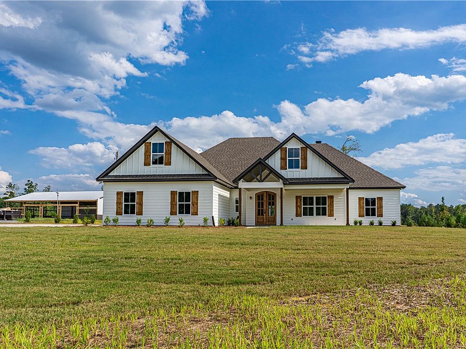 Brand-new construction home sitting on 3 acres near Lake Harding. This 4-bedroom, 2.5-bathroom home offers 2,332 square feet of well-planned space with an open layout and quality finishes throughout. The kitchen features granite countertops, custom cabinets, a large center island, and a spacious walk-in pantry. Durable LVP flooring runs through the main living areas, and the great room opens to a covered back porch with a cozy outdoor fireplace—perfect for relaxing or entertaining. The primary suite includes two walk-in closets, dual vanities, a walk-in shower, and a soaking tub. Three additional bedrooms share a full bathroom with double sinks, and there’s a half bath conveniently located for guests. Don’t miss your chance to own a beautiful new home in a peaceful, private setting.