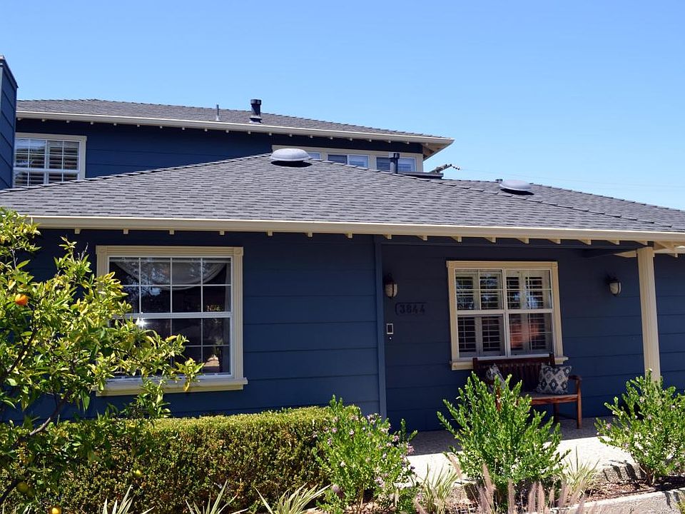 Distinctive and comfortable house features a gourmet kitchen with top of the line appliances, three updated bathrooms, five bedrooms including a huge master, large office with built in bookcases and big mountain views, custom solid wood doors throughout, wood floors, and a ground floor guest suite great for an elder parent or au pair. Outside is perfect for entertaining and includes a brick patio