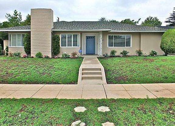 Spacious and traditional Bixby Knolls home with gracious entertaining areas and expansive "great room." Sheltered approach and vestibule leading to reception foyer. Sun filled living room with marble faced fireplace and adjacent formal dining room with built-in server/china display cabinet. Classic crown moldings. Kitchen opening to "great room" through serving counter / breakfast bar; abundant cabinetry, desk, counters. Access to patios, rear grounds and detached garage through sliding glass doors. Master suite with dressing room and private bath. Two additional bedrooms and second bath convenient to entertaining areas and bedroom wing. Central laundry room, forced air heating. New 2 car detached garage opening to paved alley; automatic door opener. Newly painted and carpeted throughout. Walk to award-winning schools and Bixby Knolls shops and restaurants. Don't miss this fabulous property.