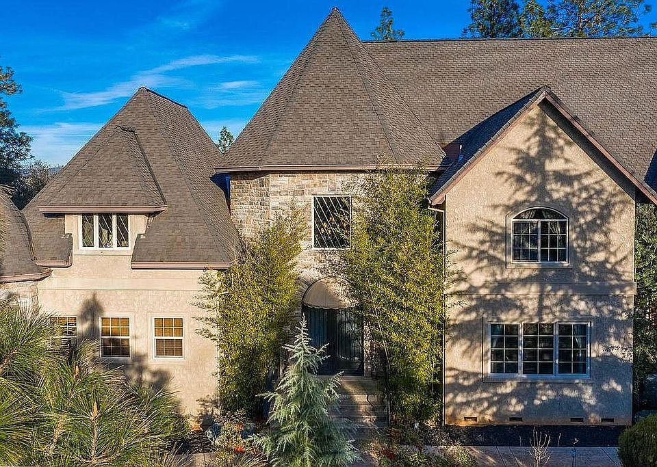 Hidden Paradise in the rolling hills of Cool, Ca. This 4887sf custom home on 10 acres has a panoramic view of the Sierras, features a 7x10' solid steel arched custom door leading into a stunning open great room with 24' ceiling/rock fireplace, a chef's delight kitchen, formal dining rm, breakfast nook, and a huge game room. There are 2 master suites, 3rd bdrm w/full ba & office. The home also includes a 2000sf RV garage w/workshop w/ half bath & a cleared pad for a future barn or granny flat