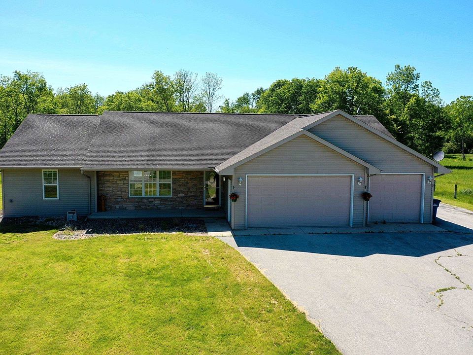 This beautiful 3BR/2BA ranch is nestled on 2.42 acres of stunning Suamico land! Step inside to find a split bedroom layout offering vaulted ceilings, unique gas FP in living room, and open kitchen/dining area flaunting large windows. Continue on to find a spacious walk-in pantry, main level laundry, and heated 3 stall garage. The character primary suite includes a tile walk-in shower, double vanities, and soaking tub. The crawl space offers room for extra storage space. Just when you think it couldn't get better...the backyard comes complete with concrete patio, huge deck area, and expansive backyard. The property backs up to a walking trail that's part of Sensiba State Wildlife Area. Don't miss out on the opportunity to make this home yours...come see today!