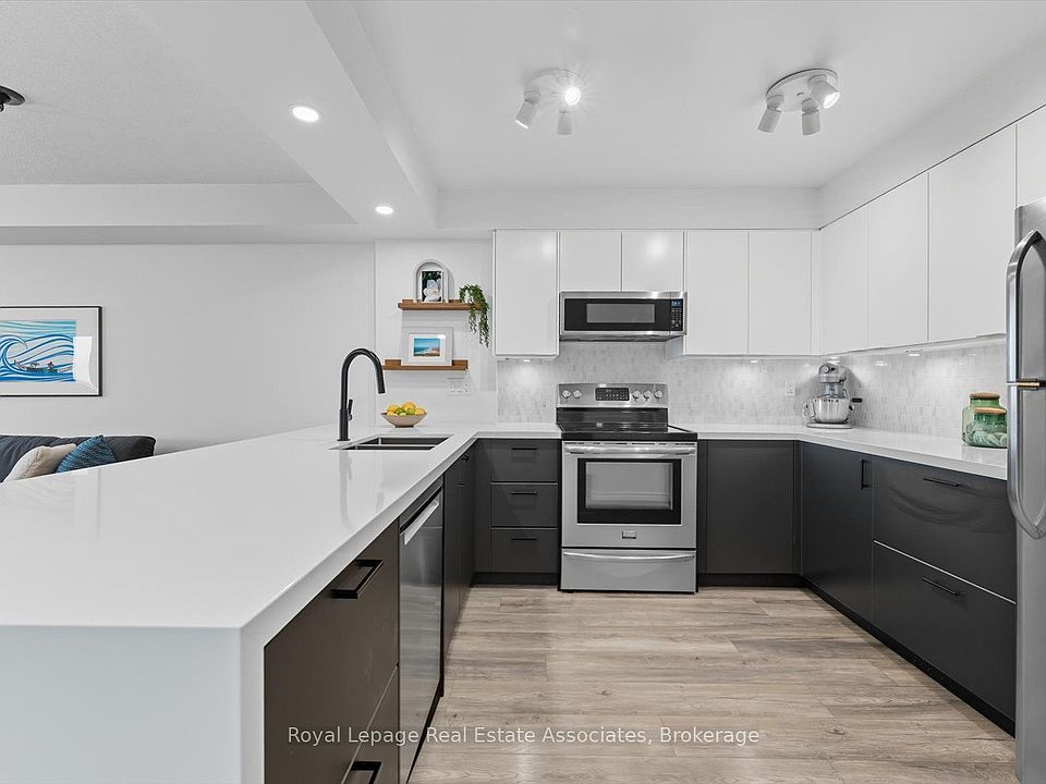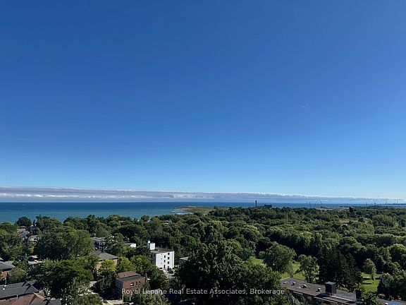 Quite possibly the nicest unit in Lakeshore Park Estates! South-facing, 180 Degree panoramic, unobstructed stunning views of Lake Ontario and the city skyline from your balcony, living room and bedrooms! 2 walkouts to the private balcony - the perfect place to relax at the end of the day. Renovated throughout with open concept living/dining/kitchen areas, updated flooring and spectacular bright and sunny spaces. The modern kitchen features stainless steel appliances, quartz countertops with a waterfall peninsula and 4 bar stool seating, marble backsplash and contemporary cabinetry. Main bathroom was completely redone in 2025 with a sleek, fresh look. The bedrooms are spacious with good closet space and updated flooring and baseboards. Underground parking space included with inexpensive options for additional spaces. Steps to TTC & GO Station. No utilities to pay - everything is included in the maintenance fees! Come and see this amazing unit and experience a view like no other!