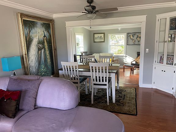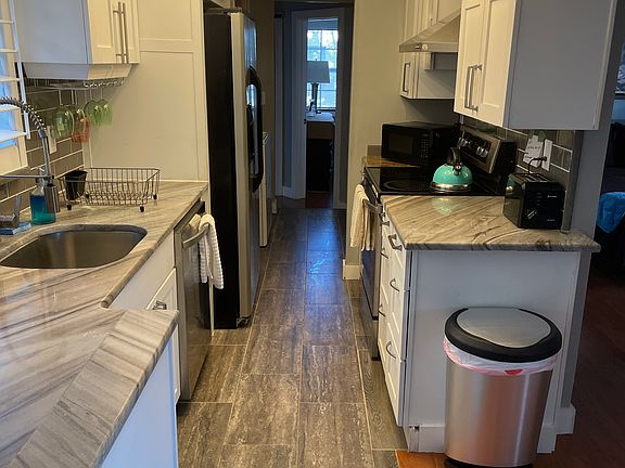 fully furnished home with stainless appliances, new wood flooring throughout with tile kitchen and baths. Newly renovated , and painted . Plantation blinds on the windows, new interior doors central air conditioning. New vinyl fenced yard with double gates enclosing private back yard. rear privacy deck with party lights. New metal roof and exterior painted. very spacious lot on a quiet street , family oriented area.