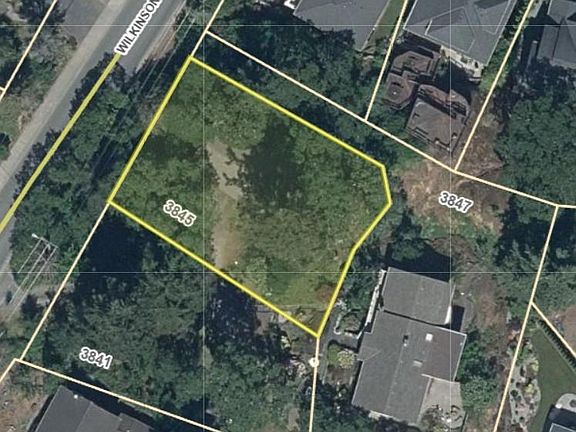 Located on the edge the the South Valley in the Wilkinson neighbourhood is an opportunity to build you dream home in an area where pride of ownership is evident. The 8407 lot (RS-10 zoned) gives flexibility to the size of home you can construct. Sewer and storm drain connections are available, although site preparation may include removal of established trees (Garry Oak and Douglas Fir) and removing the foundation of a triple car garage. This is an equally convenient neighbourhood to downtown West Shore and the Saanich Peninsula. Plenty of driveway parking to explore the property (the panhandle home is occupied so please do not disturb the owners). Although each lot is sold individually (3841 Wilkinson is also for sale), there is a rare opportunity to purchase both for those interested in establishing a separately titled multi-generational legacy family property. Purchase price includes GST. Buy now and plan for a spring build!