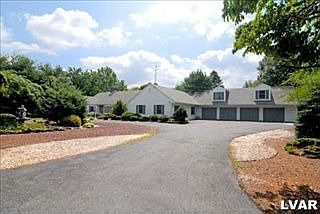 Elegant.. stone Bethlehem Twp Ranch. Private entrance,circular driveway w/ fountain, lovely landscaping, tree lined corner lot- 1.8 acres. Located near Northampton Country Club. Charming culinary kitchen w/breakfast bar/island, spacious DR, formal LR w/addt'l sitting room & fireplace. Executive office/library, solid wood paneling, built in bookshelves & cozy fireplace. Family room 25X20 perfect for Media/Game room. 4 large bedrooms, 3 full baths, powder room,laundry room & addt'l mud room. Hardwood floors. Gorgeous Bar/Florida room w/skylights leads to the patio, 40 ft. in ground pool,fish pond & 2 storage sheds. 4 car over sized garage drywall & freshly painted w/storage & large closets. Basement storage w/outside entrance. Updated roof. SEPARATE living quarters w/LR, kit, sitting room, bedroom, full bathroom & laundry. Commuters Dream, Great access to Rts. 22 33 & 78, restaurants, shopping, Community Center, golf courses & more. 1 YEAR HSA WARRANTY! Schedule your showing today!