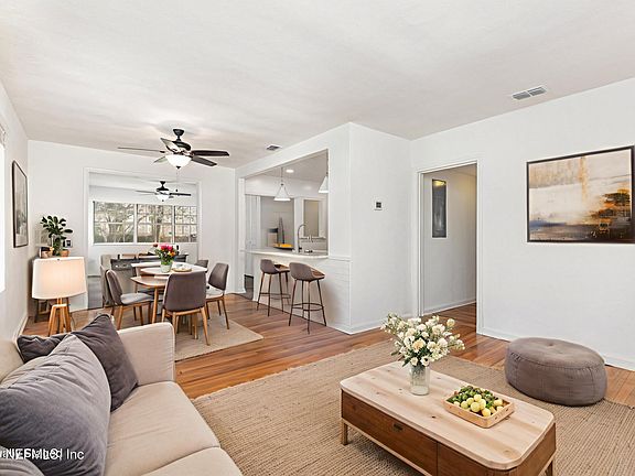 This beautifully renovated 4-bedroom, 2-bath home offers 2,002 sq ft of modern living on a spacious 0.31-acre lot with no HOA in Jacksonville's desirable San Jose area. Lovingly maintained by the same family since 1952, it blends timeless charm with today's comfort. Nearly every major system is new, including roof (2023), HVAC (2024), tankless water heater(2024), plumbing, and updated 200-amp electrical service. The brand-new kitchen features custom cabinetry, quartz countertops, stainless appliances, and a pot filler, while both bathrooms were fully renovated in 2023. Refinished solid oak and LVP flooring flow throughout. A separate, connected, air-conditioned flex space offers the perfect spot for an office, studio, or storage. With energy-efficient upgrades, a wide concrete drive, and a prime location near San Marco and Lakewood, this move-in ready gem blends character and modern living.