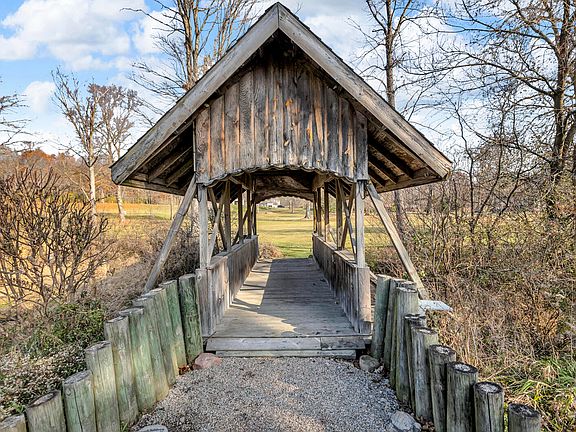Corner sinkCovered porchNatural light throughout homeUnique covered bridgeDouble lotNice walk-in closetSplit floor plan