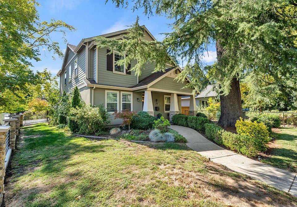 Welcome to this charming modern Elmhurst craftsman, in the heart of one of Sacramento's most desirable neighborhoods. This stunning two-story home offers the perfect blend of modern design, comfortable living and convenient location. This property is a spacious 4 bedroom, 3 bath with open airy floor plan, with OWNED SOLAR, 9' foot ceilings, upgraded Hunter Douglas Window coverings, formal living/ dining and a family room with a cozy fireplace and wine closet. Enjoy time in the beautiful gourmet kitchen which includes granite counters, center island, generous cabinet space & pantry. The well-appointed primary suite with its own bath and upgraded custom walk-in closet provides a great private hideaway. The lot features great landscaping, front and back with fully new upgraded metal and stone facade fence surrounding the property for full privacy. Sit in the courtyard and listen to the blissful fountain, gas fire pit or do some grilling, a lovely space to unwind or entertain. Large 2 car garage that includes built in EV charger and cabinets for storage with room for RV/boat parking. Located in this sweet, established neighborhood you are just a short distance to the UC Davis Med center, shopping, dining, parks and transit. Schedule your showing today to see your future home.