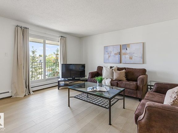Move in ready! Nicely renovated & decorated 2 bedroom furnished suite. Brand new Vinyl Plank flooring throughout the suite & freshly painted. Entertaining size living & dining room with patio doors leading out to a full length deck. Kitchen cabinets have been upgraded with an extended bar type opening to the dining room. Two good size bedrooms & master features double closets. Full bathroom with upgraded cabinets. In-suite laundry. Walk in Storage room. Walk to Tim Horton's, Millbourne Market Mall, Restaurants, Schools, LRT, & Bus outside your door. Condo fees include heat, water, landscaping and snow removal