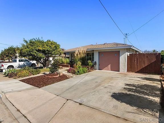 Beautiful VIEW home on 1/4 acre canyon-like setting, no neighbors in back and located on a cul-de-sac street. Absolutely turn key and well maintained. This home has all the super expensive items already done for you! There is a BRAND NEW twelve panel SOLAR SYSTEM fully PAID for and was installed in 2023 with NEM! This means minus zero to extremely low electricity bills. The 50 year Asphalt GAF Roof is only seven years young and has Low-E Therma sheet underlayment for added insulation. There's a new electrical panel, updated electric risers, relined and replaced sewer mainlines and a Noritz Tankless water heater. The large eat-in kitchen has granite sink and counters, travertine tile floor, pull out drawers and all new SS Appliances. Both bathrooms have been remodeled down to the studs. Carpet, paint and some flooring is all new within the last two years. There is the plus of a spacious home Office with custom fitting desks included. This property's lot size is all useable with ample room for an ADU, She Shed or Workshop. Landscaping is mature and drought tolerant. Large driveway offers room for small boat or RV. Brand new LG washer/dryer set, new kitchen appliances, custom fitting office furniture, four storage sheds and fire ring all convey. Only 8.5 miles to downtown San Diego, convenient to freeway access and shopping.They're not making anymore land these days!
