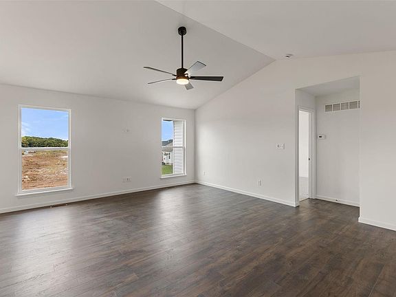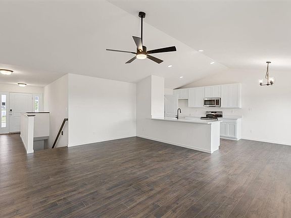 New McBride Homes presents the Aspen ranch-style home with 3BR & 2BA, available in Spring! Vaulted ceilings, 6ft windows, and wood laminate flooring in main living areas. Spacious great room with ceiling fan. Kitchen features level 4 painted white 42” tall kitchen cabinetry, quartz countertops, peninsula w/ breakfast bar for additional seating, & stainless GE appliances. The master suite features ceiling fan and walk in closet, & private master bath includes a vanity w/double sinks & 5Ft walk-in shower. On the main level there are 2 add’l bedrooms & full bath. Other extras include main floor laundry, coachlights at garage, & white two panel doors throughout. The lower-level features ¾ bath rough in for a future finish. Riverstone offers plenty of local restaurants & shopping, plus there are several nearby golf courses & parks w/ amenities. Enjoy peace of mind with McBride Homes’ 10 year builders warranty & incredible customer service! Similar photos shown.