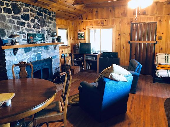 Executive Lot and 3 season, West facing cabin on Turtle Lake. This cabin features, high ceilings, split rock, wood fireplace, wood walls and floors, and a 12x13 deck. There is a stairway to the nice cleared beach where the whole family can enjoy the lake. There is also a boathouse located just to the right of the beach area. This cabin is surrounded by huge Red Pine and Spruce offering shade and privacy to the home and lot.