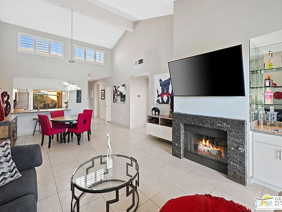 Welcome to 38474 Gazania Cir, a true turnkey gem in the desirable community of Palm Vally Country Club. At 1,330 sqft, two bedrooms/two bathrooms with vaulted ceilings and an open living/dining floorplan make this home ideal for hosting guests. Lounge on your choice of the front courtyard patio facing the sensational desert mountains or the rear south covered patio overlooking the panoramic 2nd fairway. This home consists of but is not exclusive to a kitchen with granite countertops and stainless-steel appliances, a lovely fireplace in the living room with tons of natural light, and a delightful view of the lake. The PVCC lifestyle includes two 18-hole Ted Robinson-designed golf courses, a full driving range with a short-game practice area, a 100,000 square-foot clubhouse, a pro shop, locker rooms with jacuzzi, sauna & steam, two restaurants, a lounge, 13 tennis courts, 12 pickleball courts, jr olympic-size pool, athletic club, day-spa, and salon! Embrace the desert lifestyle and create unforgettable memories in this exceptional home in Palm Valley County Club.