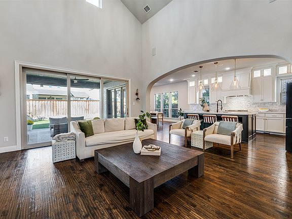 Highly desirable floor plan in prestigious Edgestone Community. Step inside to walls of windows overlooking the private backyard. At the heart of the home, the gourmet kitchen has stunning quartz countertops, large center island with ample seating, The open concept design flows seamlessly into the living room, with soaring ceilings and panoramic views creating an airy inviting atmosphere. Through the expansive sliding glass doors, step out to your own outdoor retreat with a spacious patio and turf backyard. The large master suite features a luxurious en-suite bath with a soaking tub, separate shower, and dual vanities and large walk-in closet that is adjacent to the laundry room. A private study with custom built-ins. Upstairs discover two large additional bedrooms- one with an en-suite bath. A game room and State of the art media room. With a full three-car garage providing ample space for parking and storage. Edgestone amenities, including a resort-style pool, clubhouse, walking trails, and parks. Situated within Frisco ISD and just minutes from premier shopping, dining, and entertainment.
