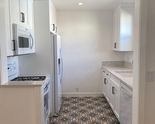 Beautifully remodeled one bedroom unit in renovated 5 plex in Culver City. Kitchen was taken down to the studs and now boasts modern tile floor, white cabinets, stone counter tops and new appliances. Dining area off kitchen has door leading to side yard. The bathroom was also taken down to the studs and re-imagined with new shower over tub, pedestal sink and built-in linen closet. Original gleaming hardwood floors throughout the remainder of the unit have been brought back to life. Dual paned windows throughout. New air conditioner/heating units installed in bedroom and living room. Be the first tenant in this beautiful, clean home! No parking on premises.