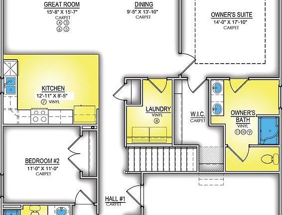 "New Home from Great Southern Homes" - The Julie II B ..New construction by Great Southern Homes. Energy and Cost efficient home features granite countertops, Tuxedo Touch home automation system, autodocking system w/speakers, music port & USB charging ports. This home features Tankless water heater with Whirlpool appliances (dishwasher, microwave & gas range. LVT flooring in living areas and bathrooms. Exterior features vinyl siding and stone. Move-in ready!!