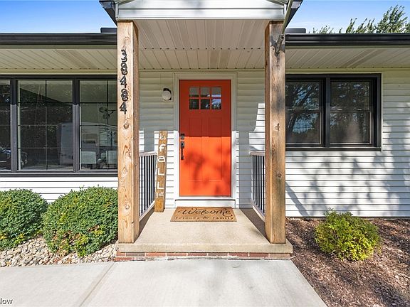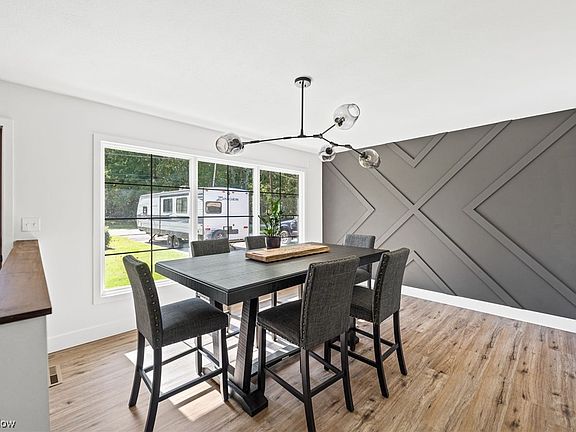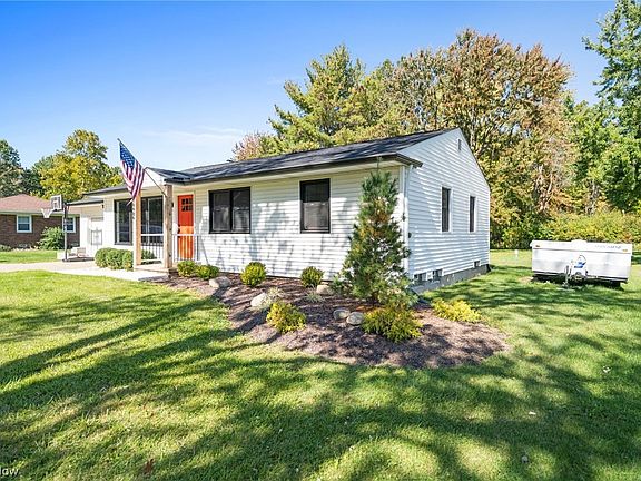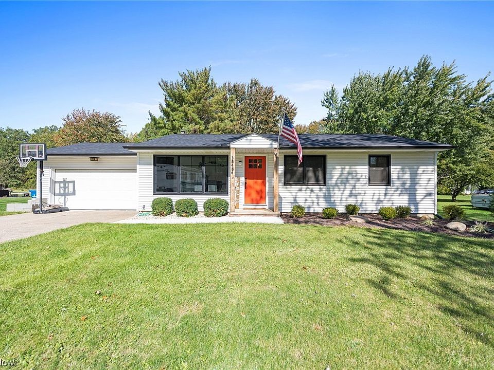 Charming four bed, 2 full bath ranch located in North Ridgeville. This home has been tastefully updated- giving you a modern look, with a relaxing country feel. From the moment you arrive you will be greeted with an abundance of curb appeal featuring a new roof(2022), windows, attached two car garage, and landscaping! As you enter the home you'll be impressed by the LVT throughout & accent wall featured in the front room that can be utilized as a dining room or living room. As you flow into the kitchen you will find new stainless steel appliances, newer soft close cabinets, subway tile, and a mix of quartz & butcher block counter tops. Off the kitchen you will flow into a large living room with a wood burning fireplace and much potential for how you utilize the space overlooking the backyard. As well, the owners suite will impress you with his and her closets, a size-able room, and renovated bathroom with his and her sinks. The other three bedrooms and bath have all been updated as well, and the current bedroom with a nursery will impress you with the mountain accent wall. The space doesn't end here- downstairs you will find a substantially large rec room, perfect for entertaining, an updated laundry room with newer cabinets and appliances, and a storage room. Some other updates include: a new septic system, electrical, plumbing, and HVAC. This low maintenance home will leave you worry free and all you need is to bring your belongings to add your personal touch.