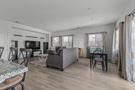 Low-maintenance backyardOversized islandStylish barn doorLuxurious ensuite bathOpen and airy layoutPrimary suiteDining area